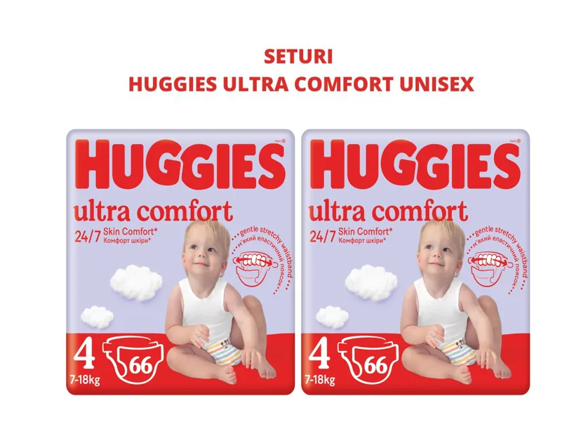1 Set 2 pachete scutece Huggies Ultra Comfort Mega 4, Unisex (7-18 kg), 66 buc
