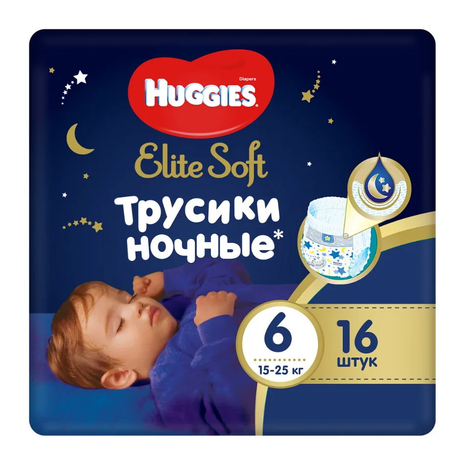 Ночные трусики Huggies Elite Soft Overnight 6 (15-25 kg), 16 шт.